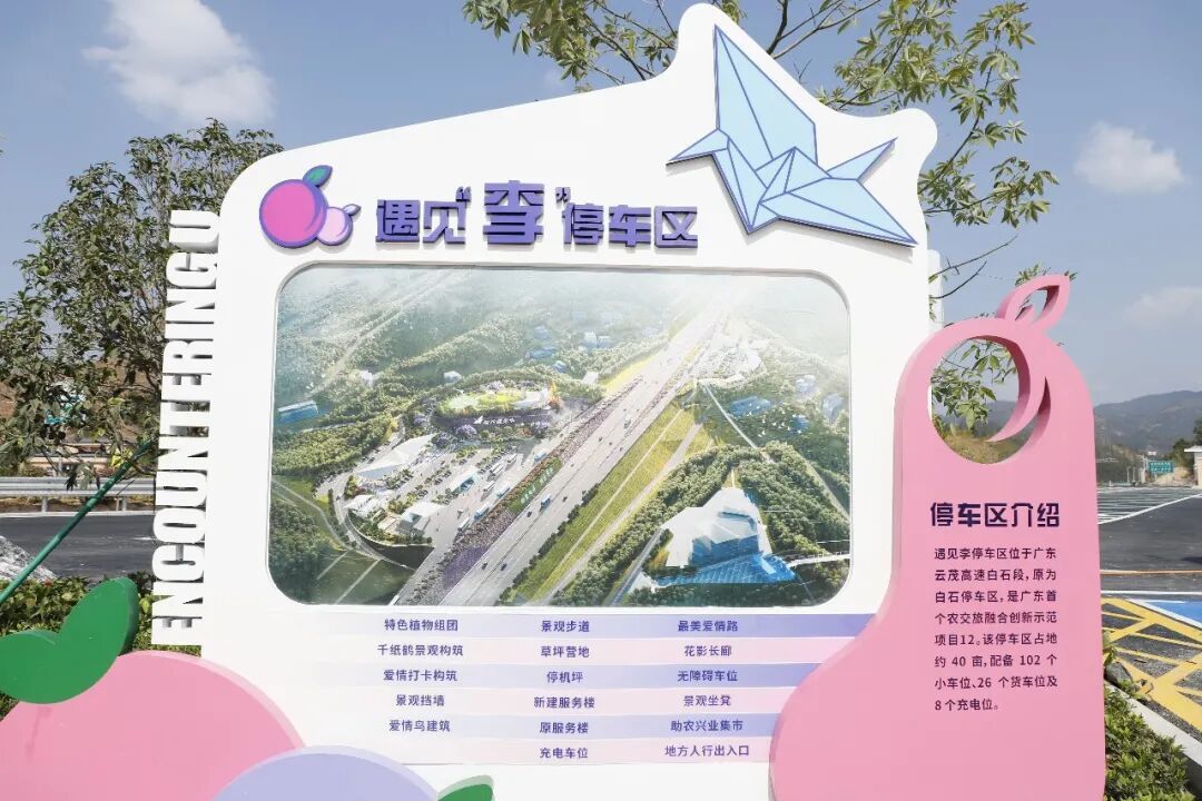 遇见李停车区坐落于云茂高速茂名段,紧邻信宜三华李主题公园,分为南北两区,其前身为白石停车区。该停车区自2023年投入使用后,凭借“交通+旅游+农产品”的融合实践,先后成功入选全国“2023年度交通与旅游融合创新项目”和广东省“交旅融合发展”十佳案例。