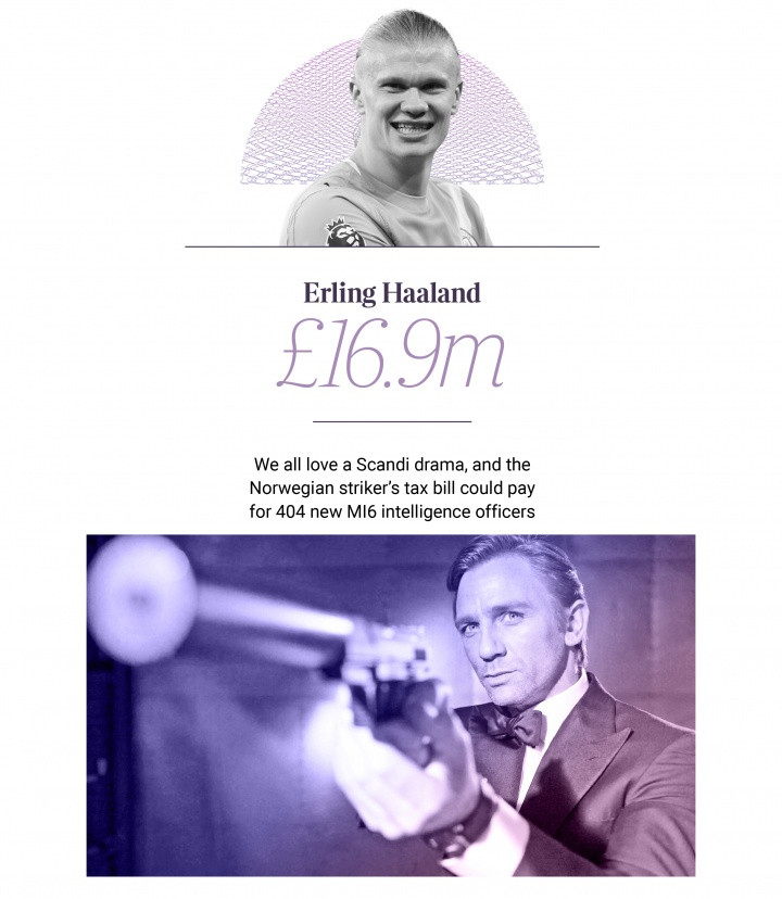 直播吧01月31日讯据英媒《泰晤士报》年度税务榜单,英超球星萨拉赫与哈兰德位列英国纳税额前100名。